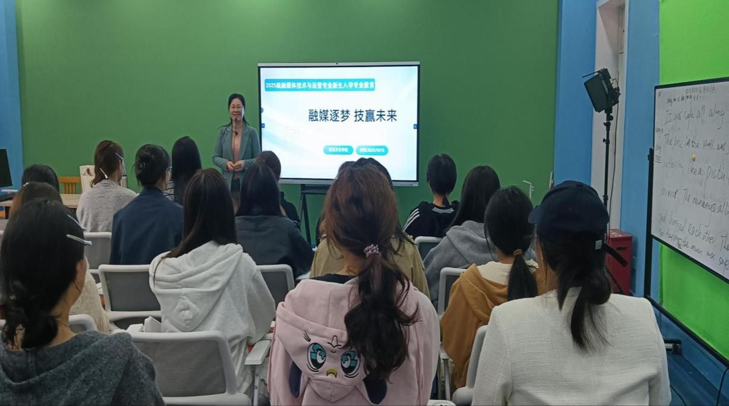 10月13日下午,我院融媒体技术与运营专业面向2025级新生举办以“融媒逐梦 技赢未来”为主题的专业入学教育讲座。专业负责人张海清老师担任主讲,通过详实案例、行业数据与学业规划,引导学生深入理解专业内涵,明确发展方向。