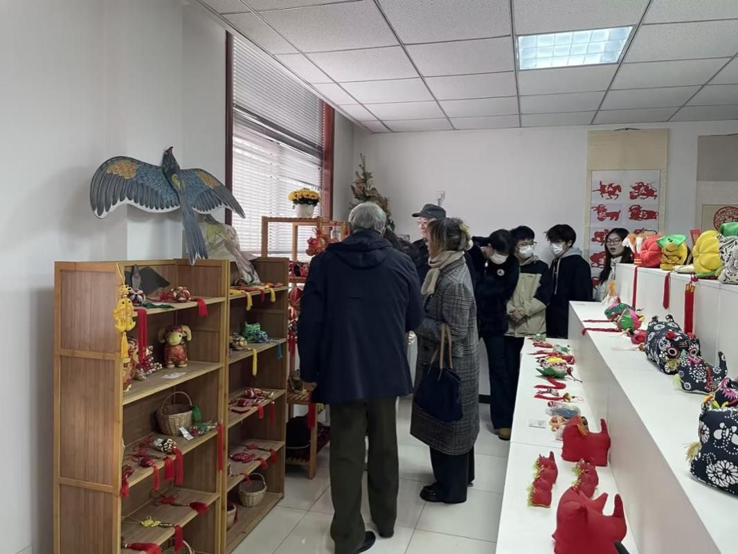 在周团长的引导下,师生参观了徐州非遗作品展。他围绕香包、撕纸、虎头鞋等民间传统技艺进行了生动讲解,并鼓励青年学生主动担当,积极传承与弘扬中华优秀传统文化。随后,全体师生参观了“铭记抗战”史料展。周广华现场讲授了一堂生动的抗战历史课,细致梳理了抗日战争从局部抗战到全民族抗战的历史进程,并通过实物史料深刻揭露了侵华日军的罪行。展出的抗日战争时期日本杂志、报纸、画报等实物,再现了这段必须被铭记的历史。
